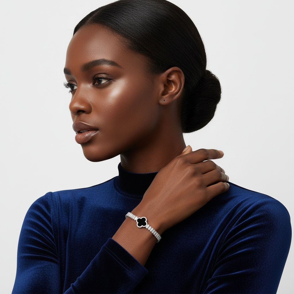 Tennis Silver CZ Baguette Black Quatrefoil Bracelet – Word Up Jewel's & Accessories Boutique