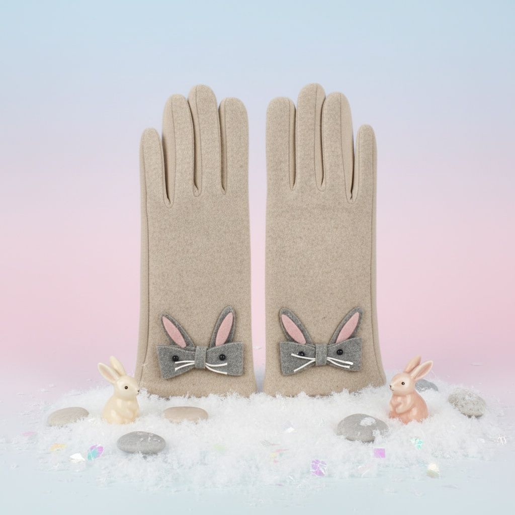 Beige Woolen Cute Rabbit Touchscreen Winter Gloves – Word Up Jewel's & Accessories Boutique