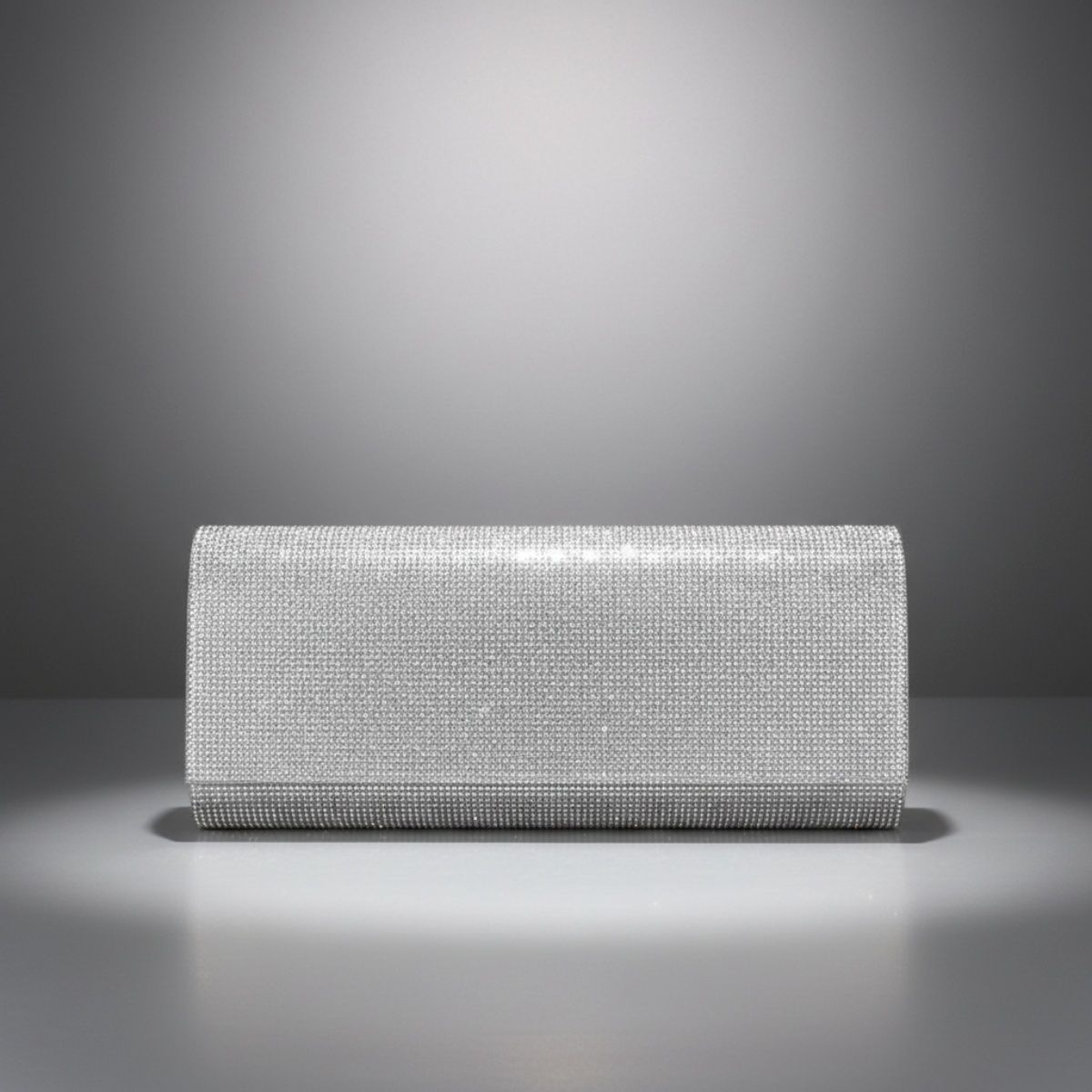 Women's Formal Evening Clutch Bag. Premium High Quality, High Sparkle Flap and Snap Evening Clutch Bag Featuring Rows of Clear Rhinestones Over Luxury Satin-Finish Silver Fabric. Flap and Snap Closure. Extra Long Size. Thick Durable Construction. Includes Detachable Silver Metal Shoulder Chain. Also Includes Small Bag of Rhinestones for Repairs During the Lifetime Use of the Bag.