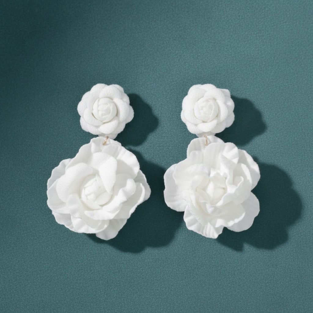 Drop White Double Rose Flower Felt Petal Earrings – Word Up Jewel's & Accessories Boutique
