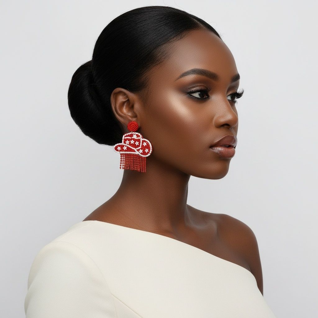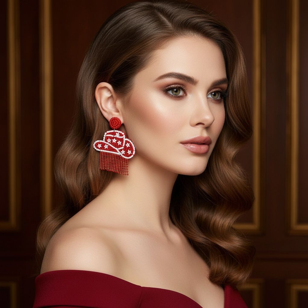 Fringe Red White Bead Bling Cowboy Hat Earrings – Word Up Jewel's & Accessories Boutique