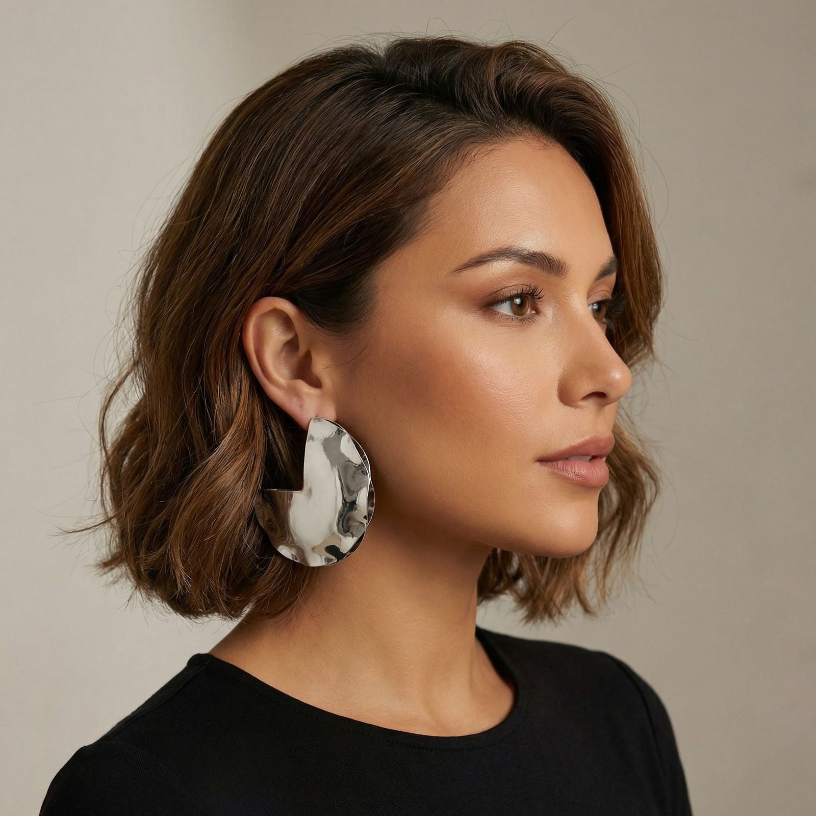 Open Hoop Polished Silver Pinched Metal Earrings – Word Up Jewel's & Accessories Boutique