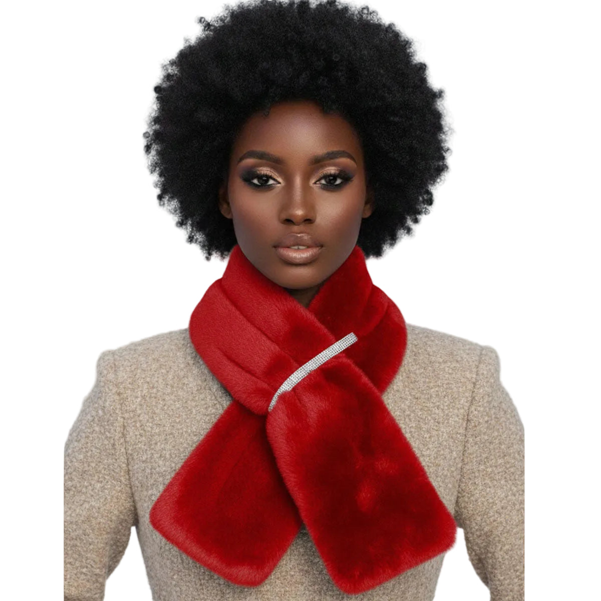Scarf Luxe Faux Fur Red Rhinestone Pull Thru – Word Up Jewel's & Accessories Boutique